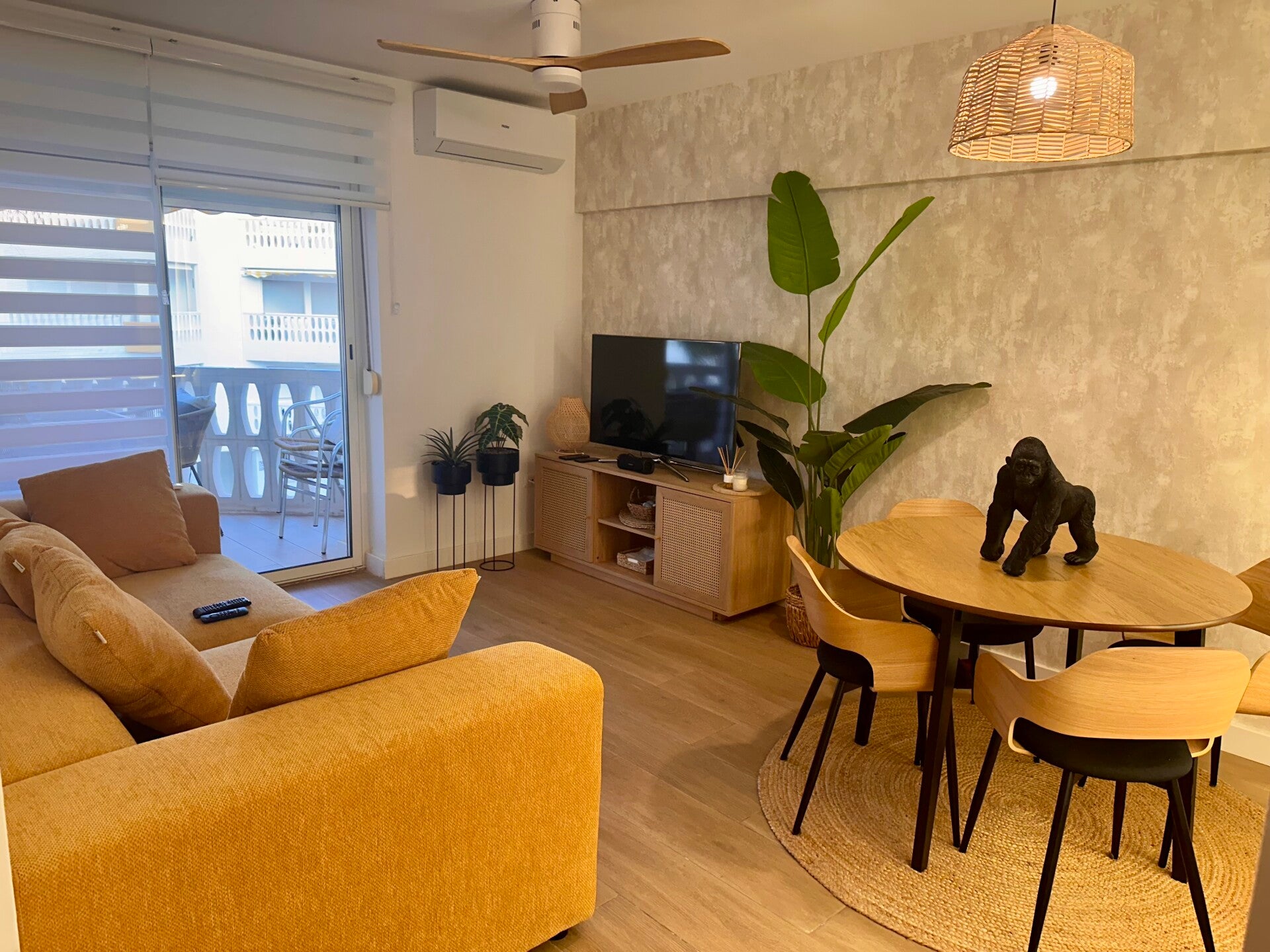Queremos que sienta la amplitud y la luminosidad de cada espacio. La sala de estar es perfecta para relajarse después de un día de playa, ofreciendo un ambiente acogedor y moderno con todas las comodidades.